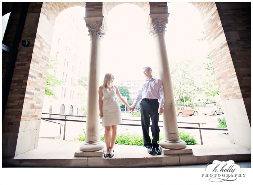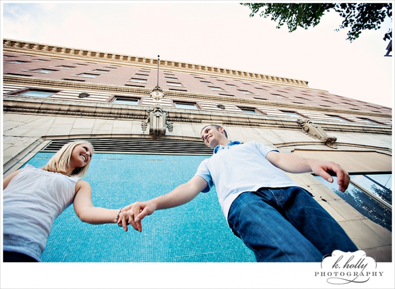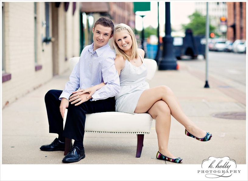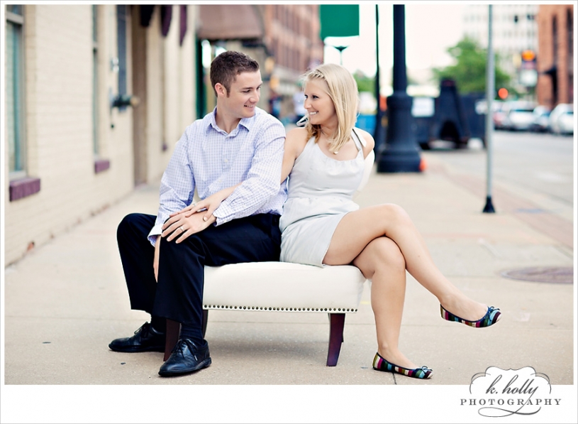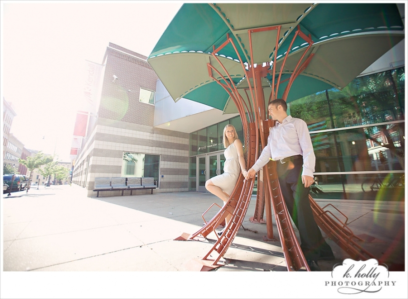 Happy Anniversary to Christine and Ryan! They have been married for one year, and are still rocking that just-married glow. They told me a little about their wedding, which was rainy and dramatic. Beautiful, but left them wanting some sunny, fun, and romantic images. This was the perfect solution, and we had a gorgeous evening for it! We had no specific plan, just ran around downtown Grand Rapids enjoying the weather and chatting between shots. I’m so glad they did this! Aren’t they adorable? Seriously!